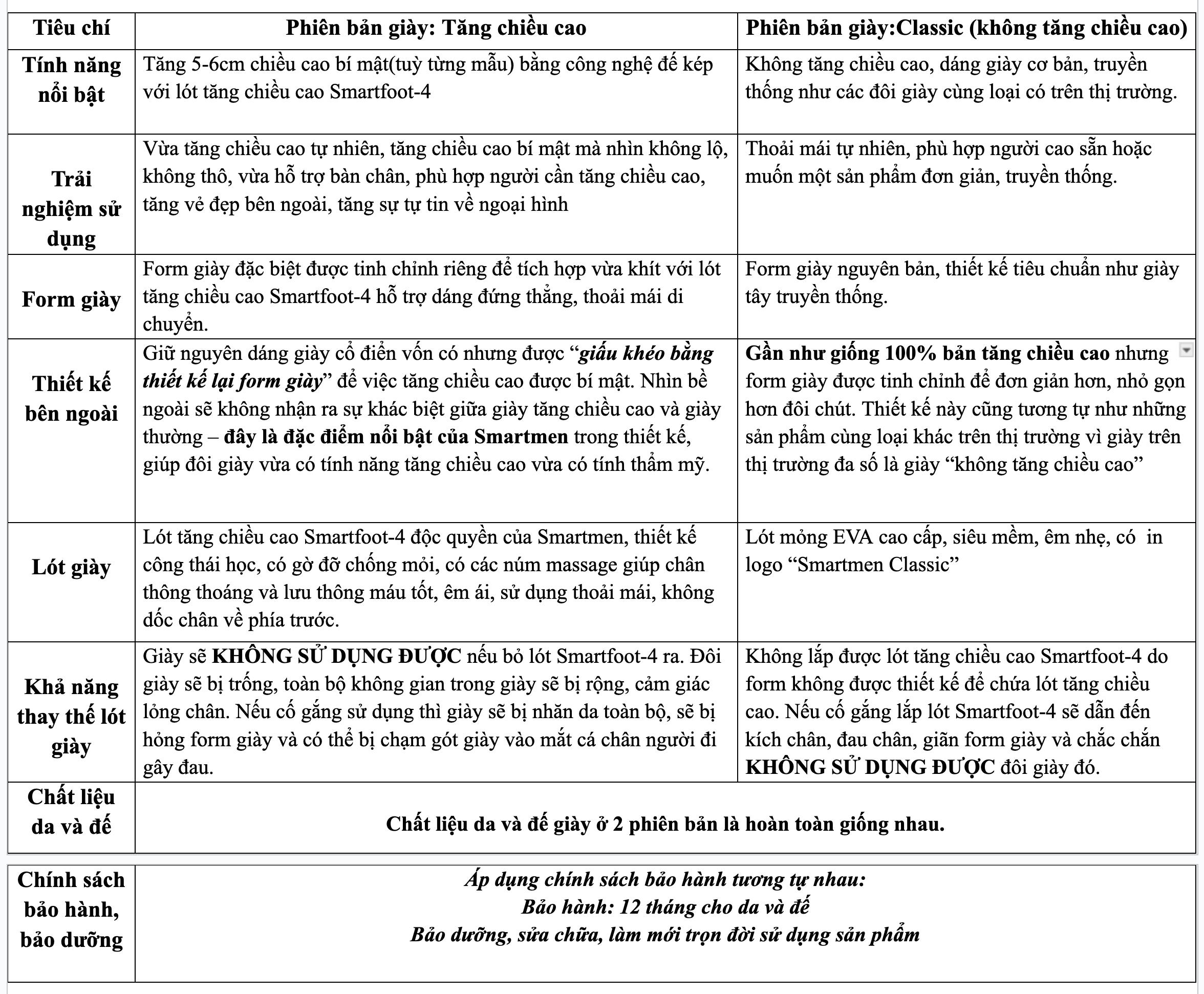 - Độ cao: Sản phẩm có 2 phiên bản: Tăng 5cm chiều cao và Không tăng chiều cao